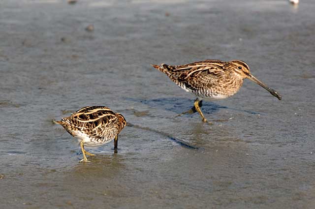 タシギも2羽が餌を探していました。