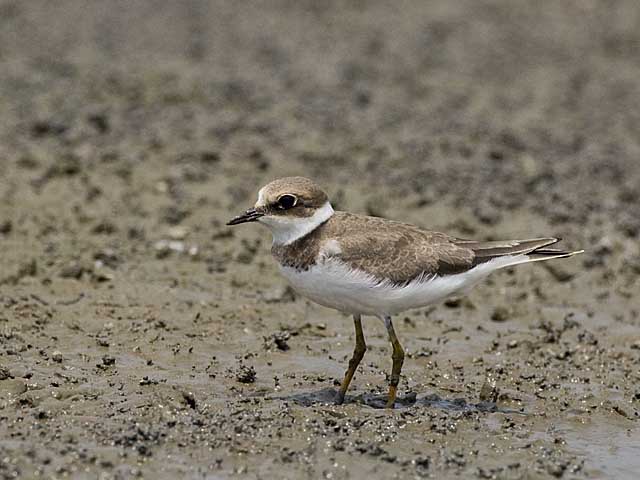まだコチドリのトレードマークの金色のアイリングではなくて細くて白いアイリングで、尾羽も風切り羽より突き出ていますが、嘴の長さや羽色などから見てコチドリの幼鳥です。