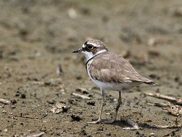 同じ休耕田にいた金色のアイリングのコチドリの成鳥で、足の色は白っぽいピンクの個体でした。
