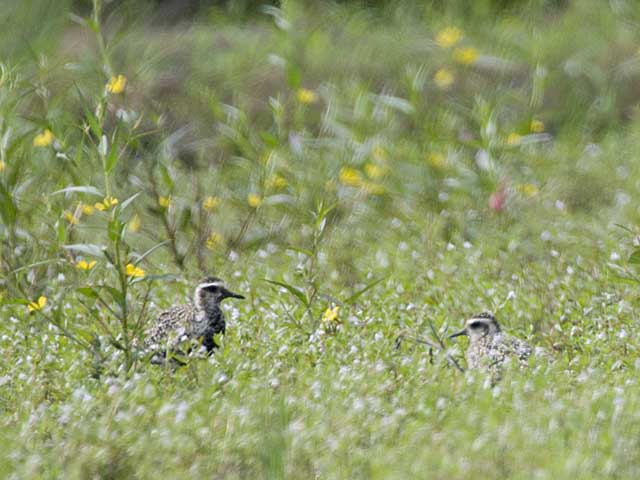 左の個体は夏羽から冬羽に移行中のようで胸の黒い羽が残っていました。