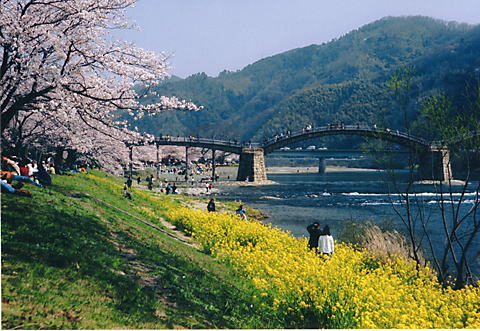 2000.04.08 春の錦帯橋 社宅から5分程度で行ける距離にありました。 この年は桜の開花がすこし遅くて桜も菜の花も週末に満開となりました。 |