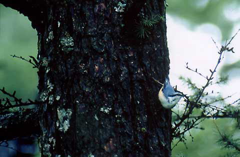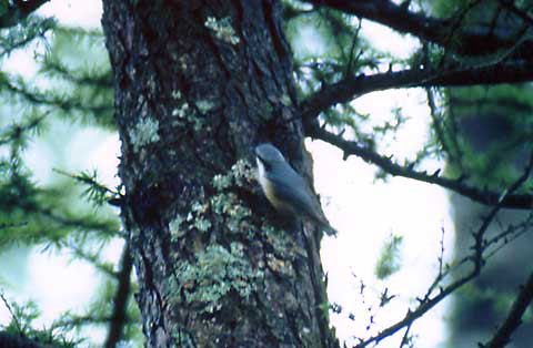 夏休みの旅行で、朝早く、湯瀧から湯川に沿って歩き始め、戦場ヶ原を抜けたあたりであったゴジュウカラです。
