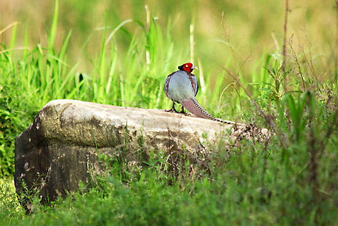 岩上のキジ