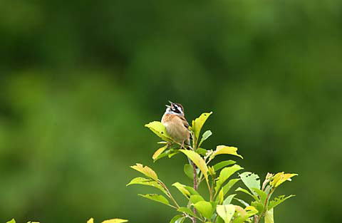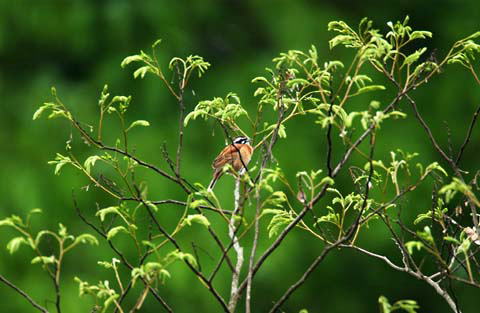 ● 新緑の里山に歌うホオジロ