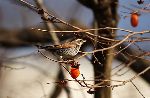 柿の木のツグミ