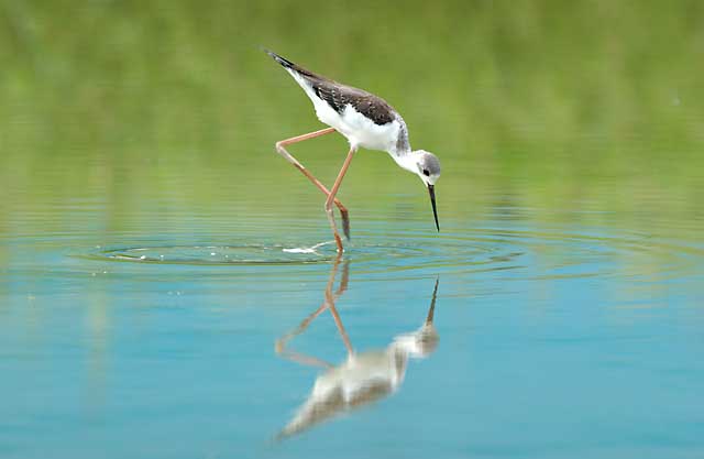 | 2003.8.30 巨椋干拓地に行って来ました。 セイタカシギの幼鳥があまりにもかわいかったので、あっという間に1000枚以上もシャッターを切っていました。 そのような訳で、今回はスライドでご覧戴くことにしました。 水面への種々の写り込みがおもしろい効果を上げていて、ある場面では、まるで、南海の珊瑚礁の海にいるような気分にしてくれます。 どうやら種明かしをしない方がよさそうです。 |