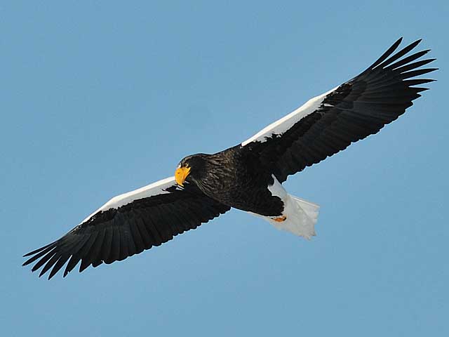 沢山いたオジロワシよりやや大きく、肩羽根が白く嘴の黄色みも濃く立派です。