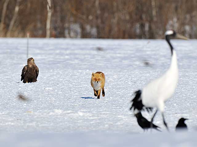 キタキツネ、オジロワシ