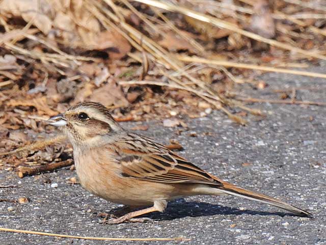 マヒワの隣には芦原の鳥のオオジュリンも。
