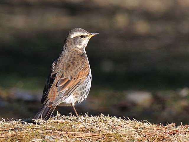 あちこちで顔を出したツグミです。