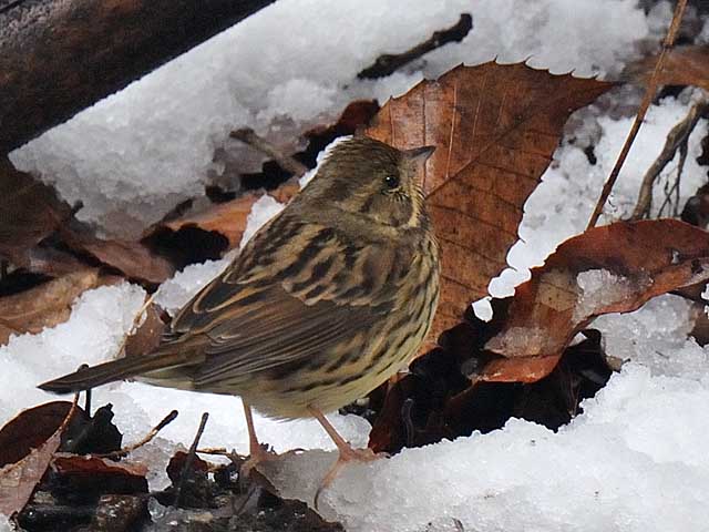 黄色や緑の色合いが全く見られませんのでこれもクロジの雌かとも思いますがなにせ今年は雄はアオジしか見られませんのでやはりアオジの♀と考えるのが自然なのではとも思い、まだ迷っています。