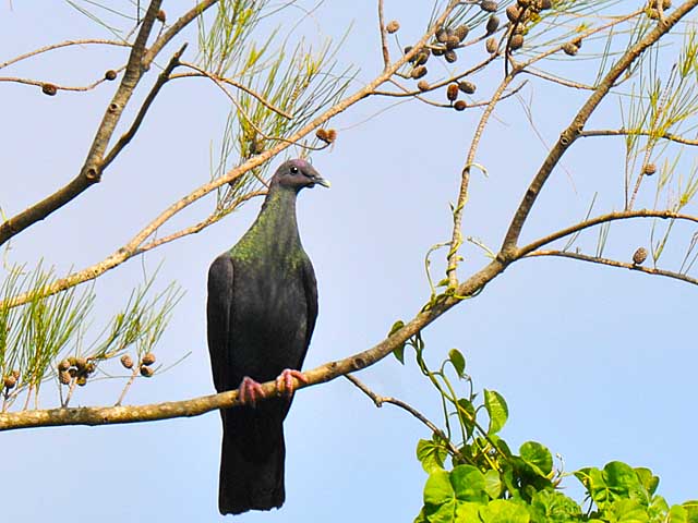 遠目には黒く見えるカラスバトです。