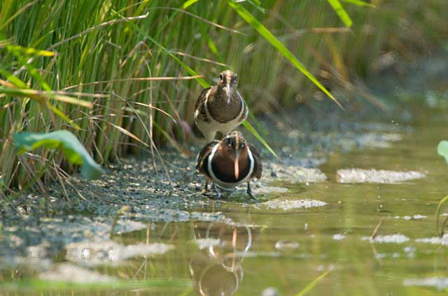 先頭を行く雌がしゃがんで交尾の姿勢を取りました。