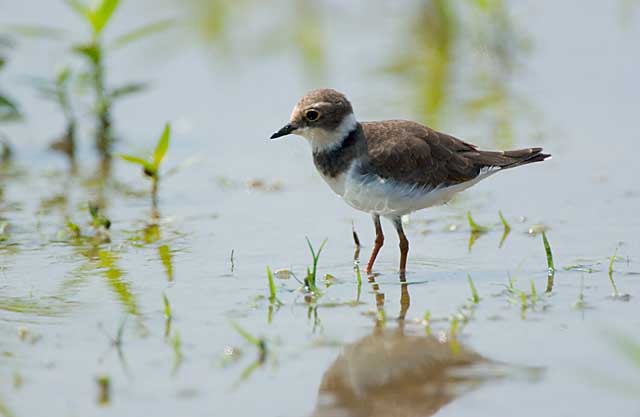 コチドリによく似ていますが、アイリングが細く、翼の先端から尾羽がつきだしています。