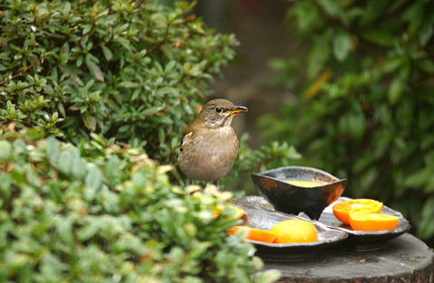 もう一つの餌台にシロハラのお客さんです。