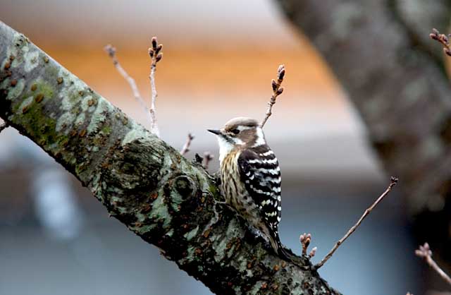 桜の木に来たコゲラ