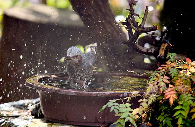 ヒヨドリ水浴