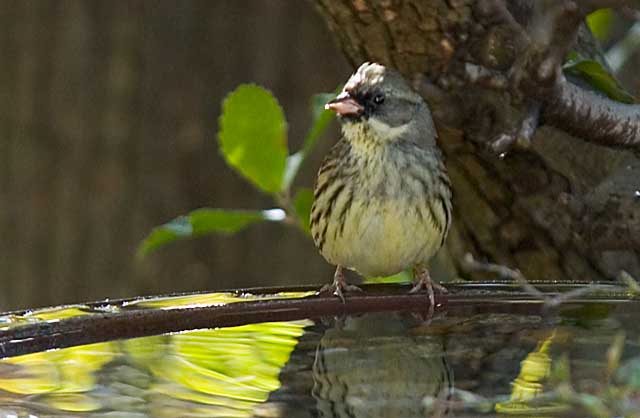どうやら我が家が気に入ったらしくてすっかり定着したアオジ君のバードバスの水鏡の写真です。