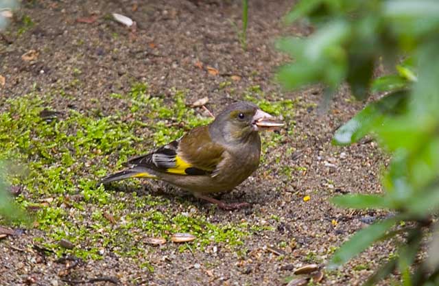 毎年、2月の後半にやってきてサクラの季節になると姿が見えなくなるカワラヒワです。
