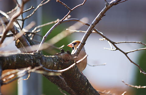庭の桜に来たシメ