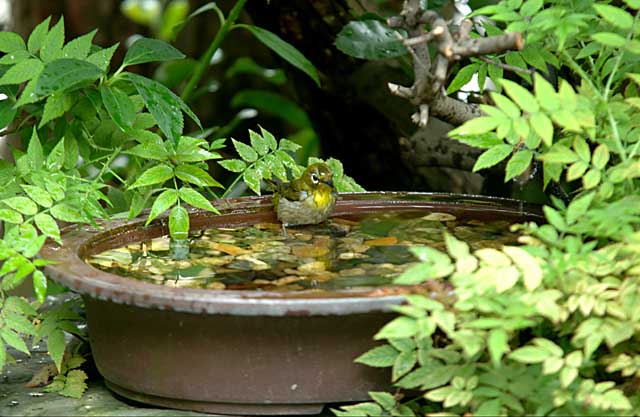 梅雨に入り、バードバスにやってくる鳥も、メジロ、ウグイス、スズメ等の常連だけになっています。