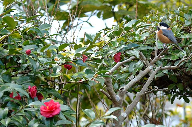 ヤマガラも獅子頭を眺めながら湯上がりの一休みです。