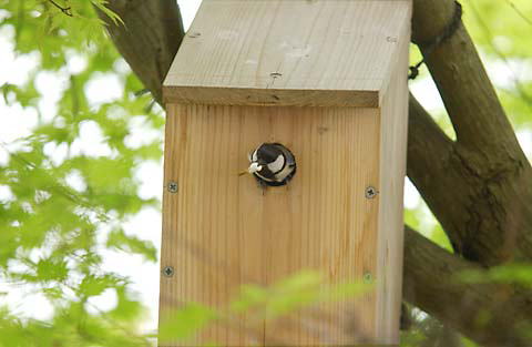 餌の虫を運んできてから、再び外に出てゆくときには2回に1度位の割合で雛の糞を運び出しています。