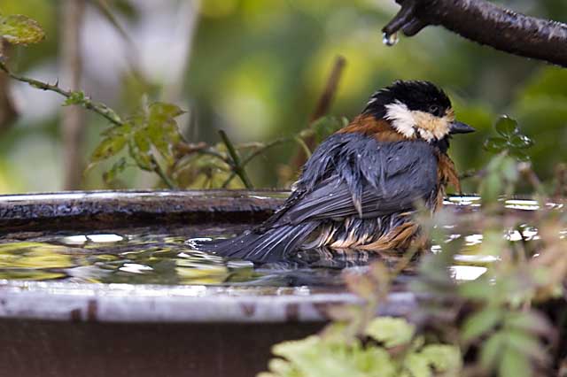 再び水浴びを始めると必ず、徹底的に水を浴びて、びしょぬれになって出て行きます。