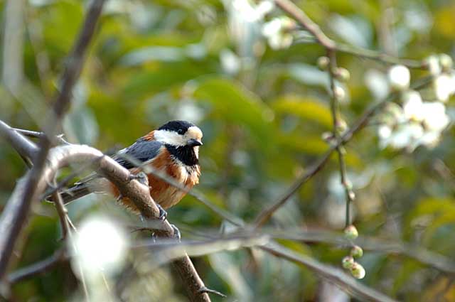 湯上がりの羽繕いのついでに、ちょっとお花見のヤマガラです。