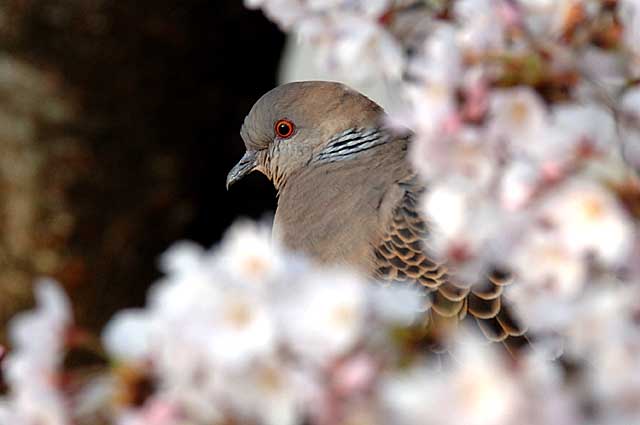桜の花の間からちょっと顔を覗かせたキジバトです。