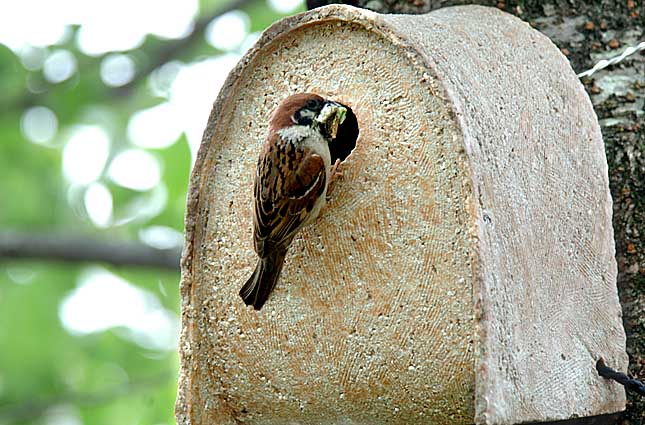 スズメの両親は子沢山と見えてせっせと餌を運んでいます。
