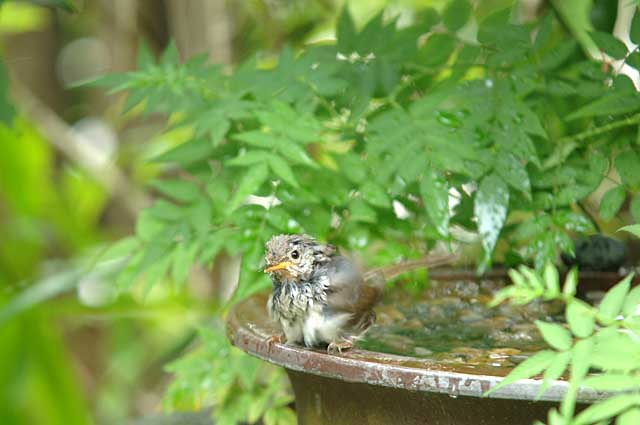 水浴を何度も繰り返してずぶ濡れになって出て行きます。