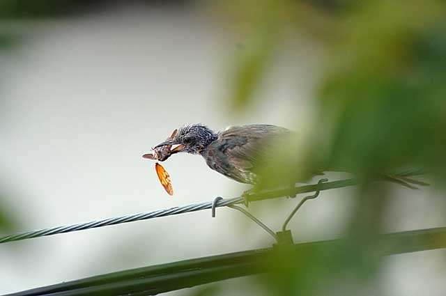 蝉を食うヒヨドリの若鳥