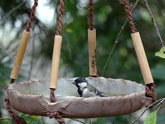 どういう訳かシジュウカラは梅の木に吊したバードバスがお気に入りのようで、最近はもっぱらこちらで水を飲んだり水浴びをしたりしています。