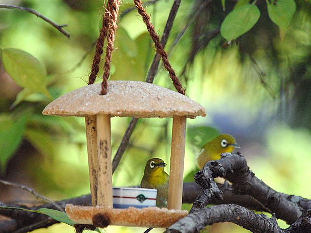 試しにオレンジジュースを杯に入れてやると早速、ペアでやってきて飲んでいました。