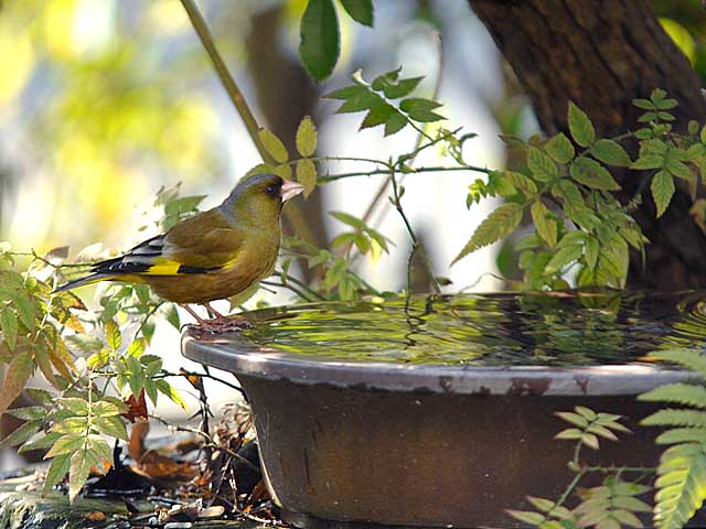 カワラヒワも最近は水浴をするようになってきました。