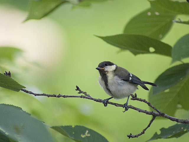 このところ毎日やって来ていたシジュウカラの巣立ち雛ですが、もう立派な若鳥になっています。