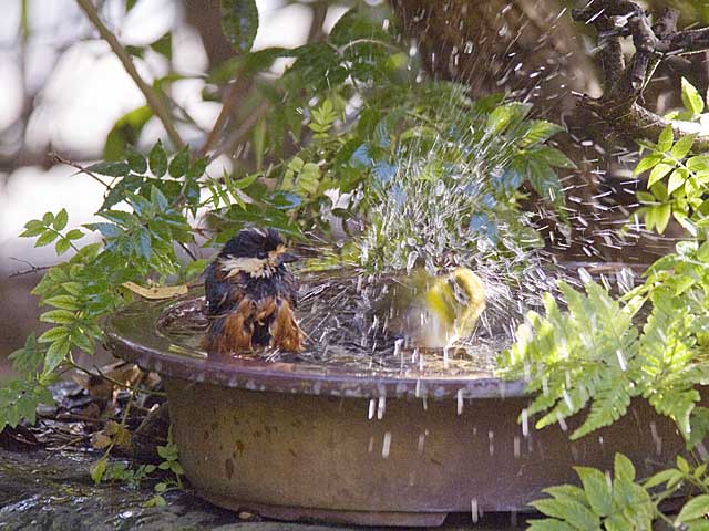 バードバスのメジロとヤマガラ