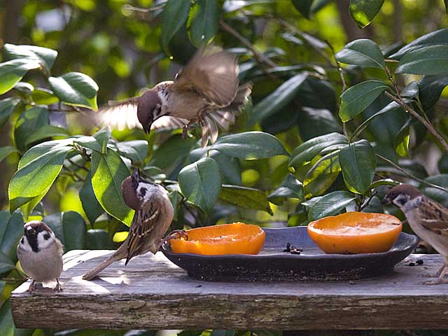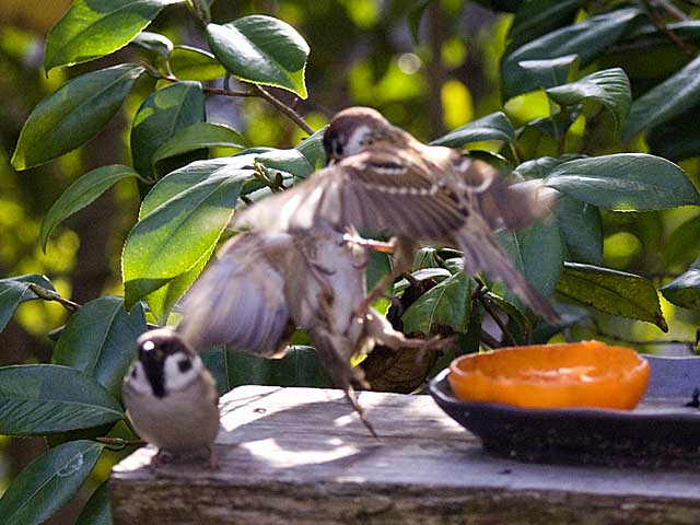 それでもスズメの数が増えてくると喧嘩が始まります。