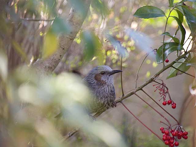 マンリョウを喰うヒヨドリ