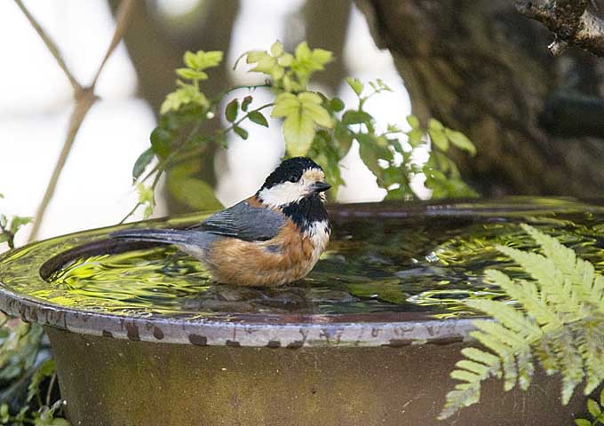 ヤマガラの水浴