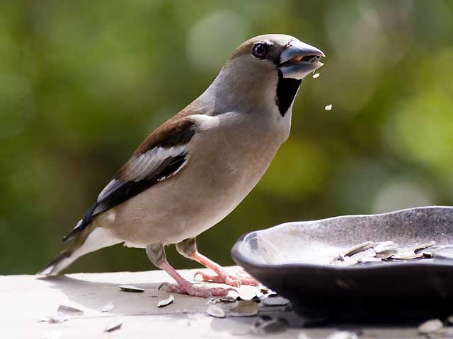 庭のバードテーブルに来たシメ
