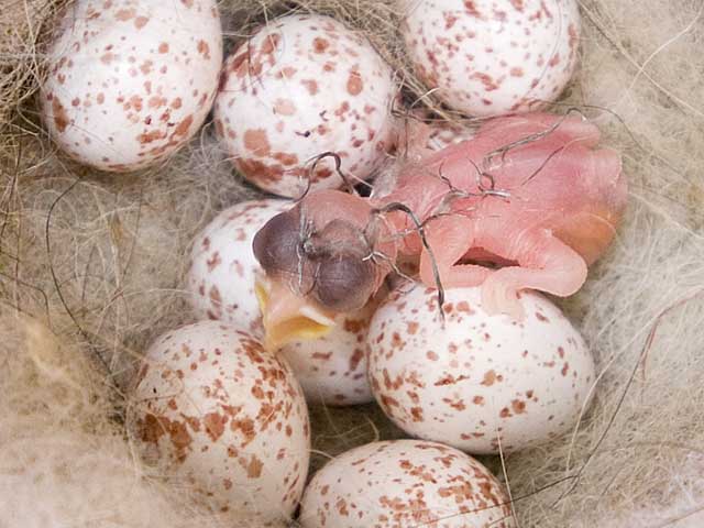 孵化直後の雛が一羽と卵が8つあり、すべてが孵化すれば9羽の大家族ということになりそうです。