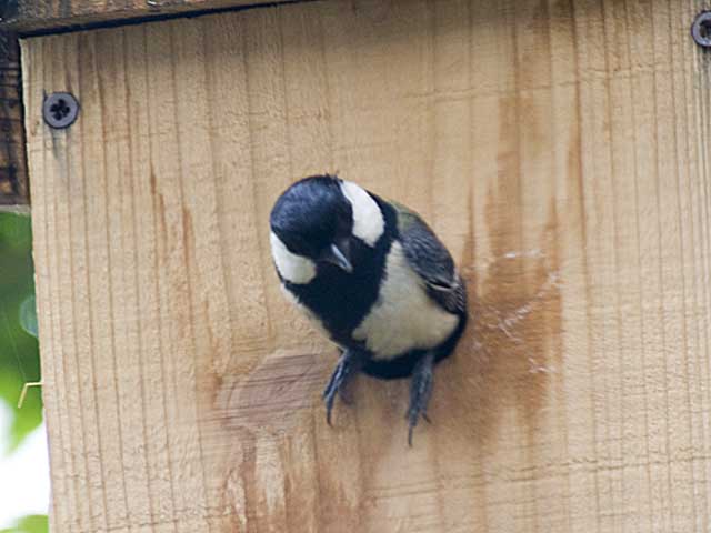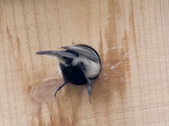 父は母よりも少し体が大きいので、スズメ対策で標準よりも2mmも小さな26mmの巣穴で、出入りに苦労しています。