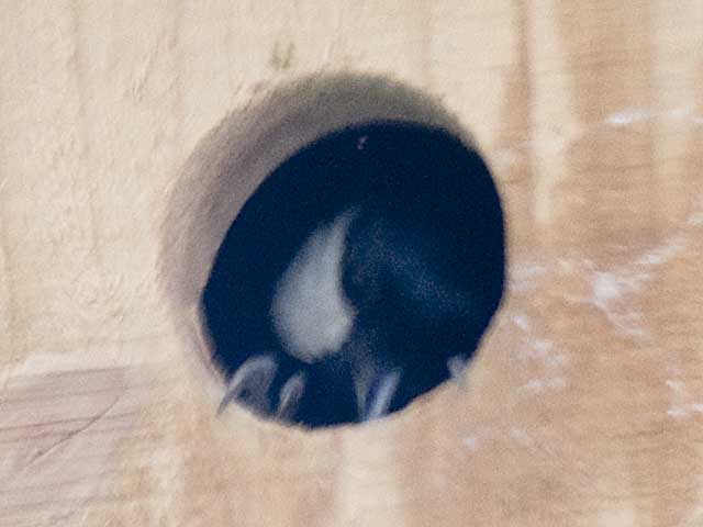 (暗い穴の中を無理して焼きだしていること、そもそも、巣の中の映像以外のすべての画像が締め切ったガラス越しに部屋の中から撮っていること等のために画像が悪くてすみません。)