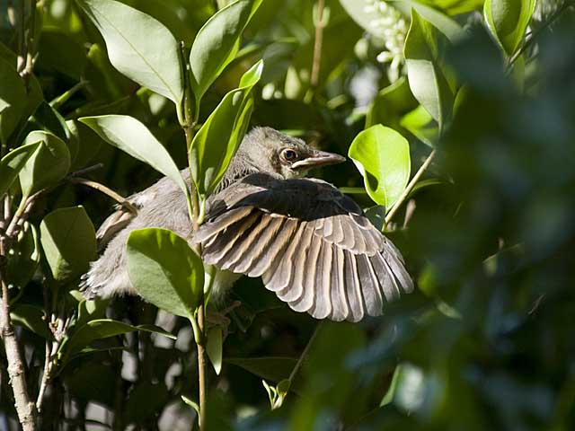 梅の木からネズミモチの木に不器用に飛び移ったところです。