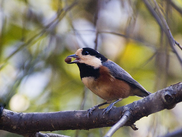 エゴノキの実を食うヤマガラ