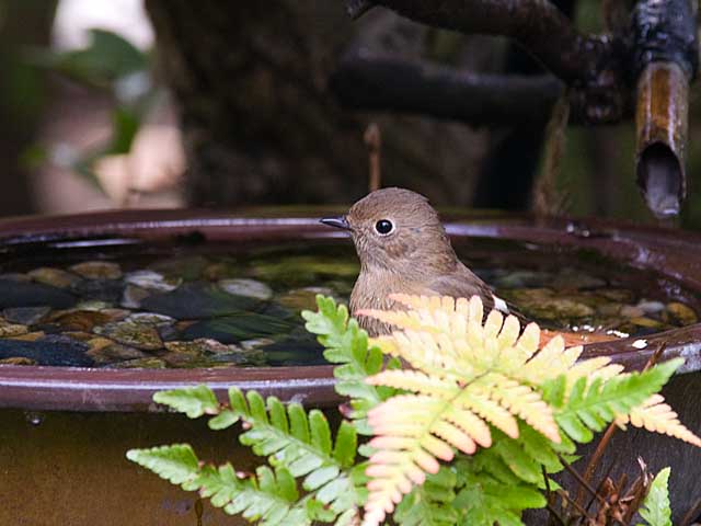 ジョウビタキの水浴