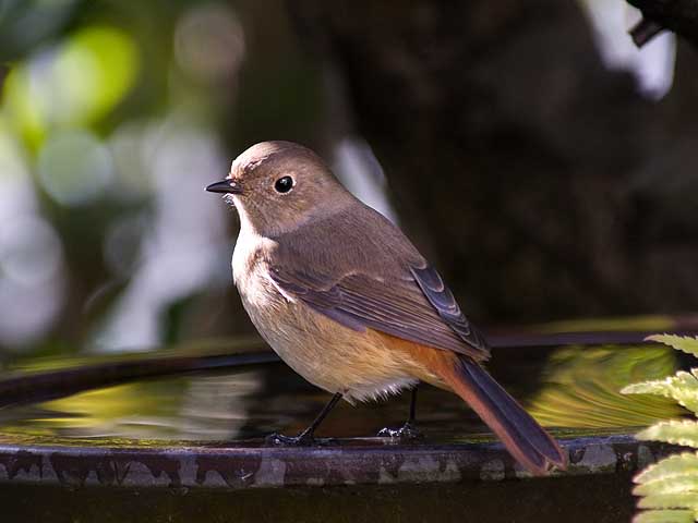 バードバスのジョウビタキ