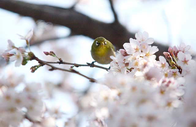 桜が咲いて一番喜んでいるのがメジロのようです。